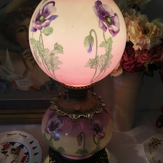 Lamps: Victorian Gone with the Wind hand painted globe lamp USA; various candlestick table lamps;